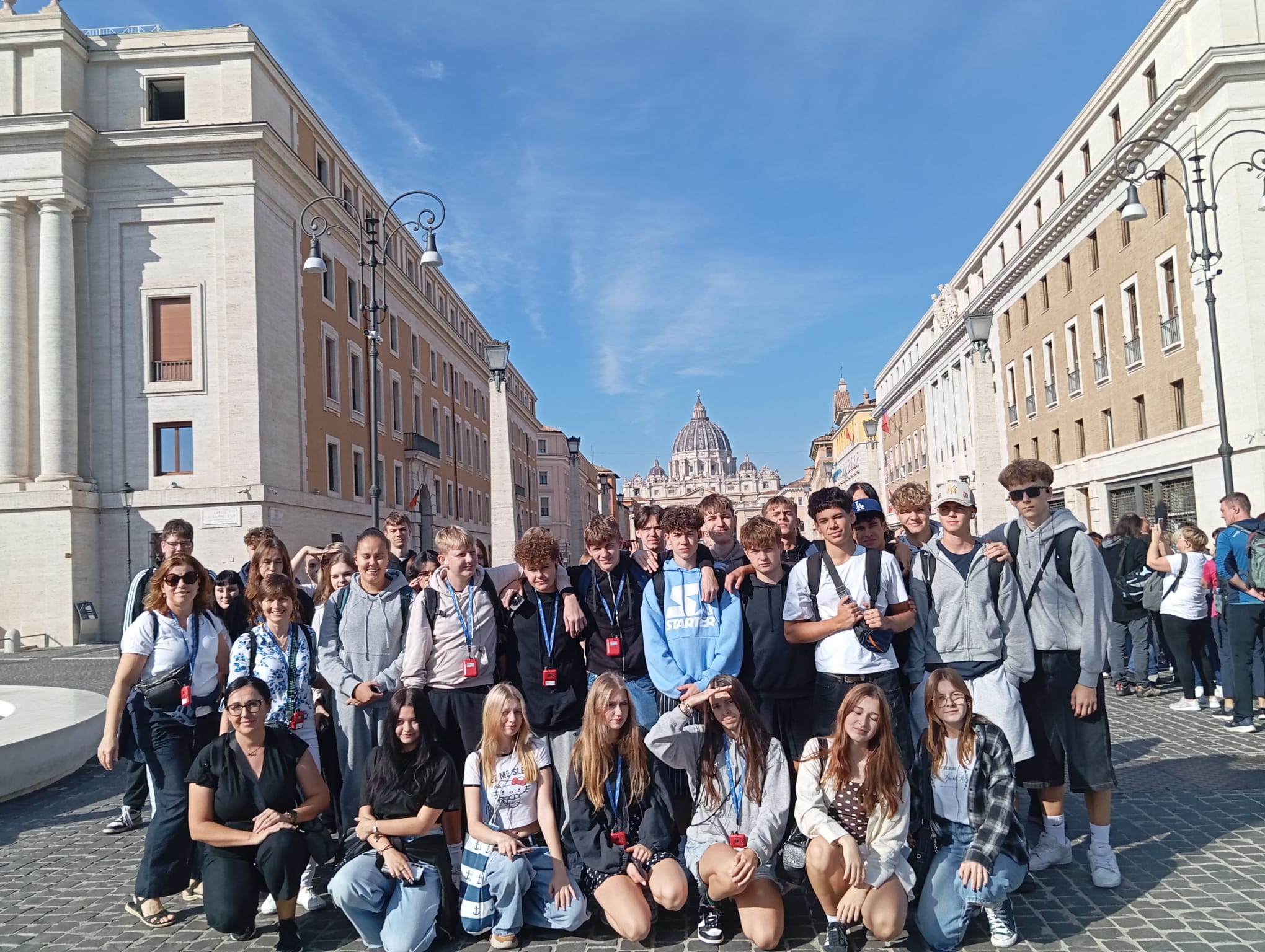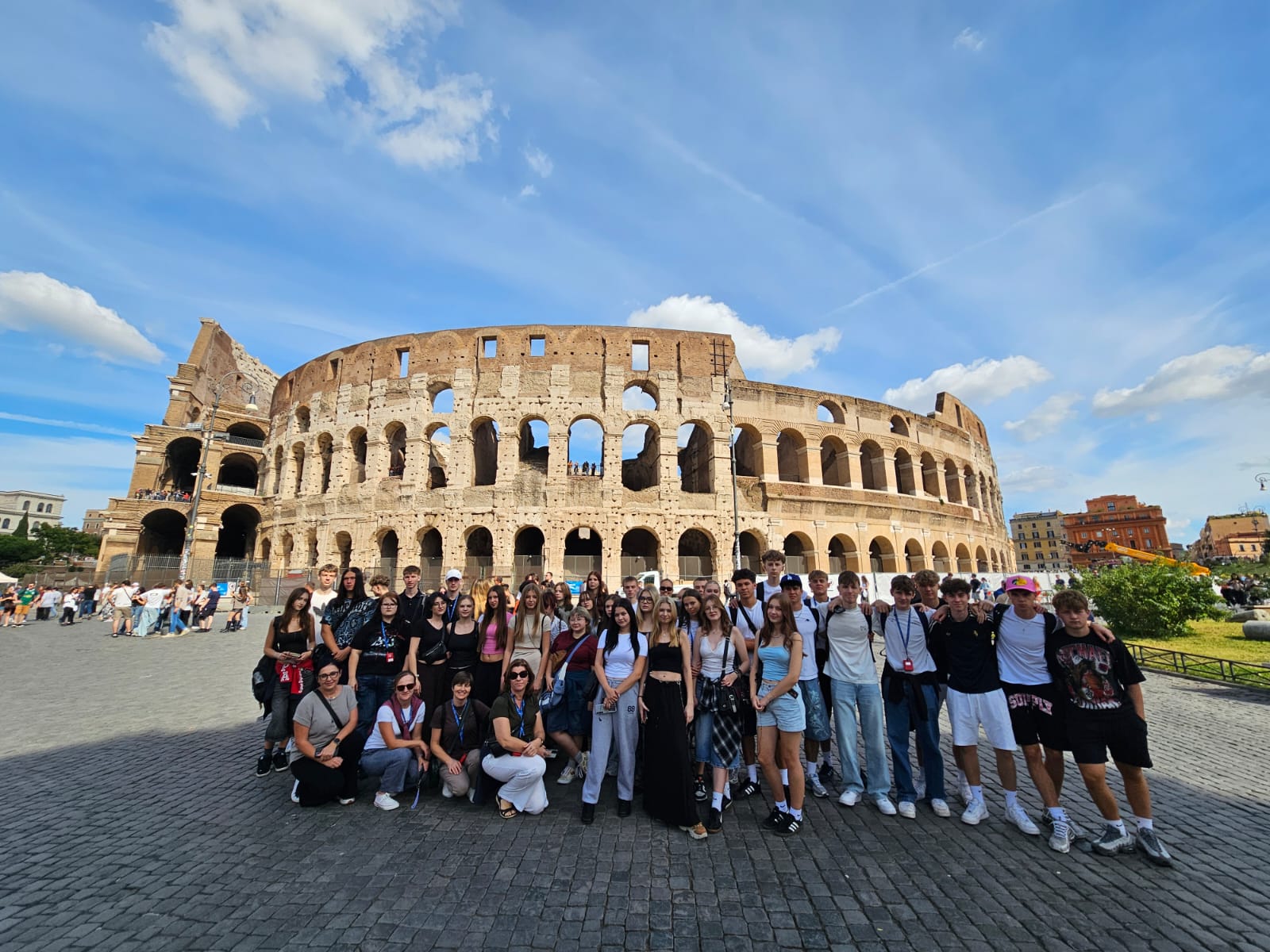 Uczniowie naszego liceum w dniach 5 - 11 października 2025 roku odbyli podróż do Włoch. Nasza szkolna wycieczka była doświadczeniem, którego długo nie zapomnimy. W ciągu kilku intensywnych i pełnych emocji dni odwiedziliśmy cztery niezwykłe miasta: Wenecję, Bolonię, Florencję i Rzym. Każde z nich zaoferowało coś wyjątkowego, pozwalając wszystkim lepiej poznać historię, kulturę i duszę Italii. Podróż rozpoczęliśmy w Wenecji, mieście kanałów i gondoli. Spacerując wąskimi uliczkami i przechodząc przez niezliczone mostki, czuliśmy się tak, jakbyśmy znaleźli się w świecie zawieszonym między snem a rzeczywistością. Spacer na Placu św. Marka, obok Bazyliki i Pałacu Dożów uświadomił nam, jak cenne jest dziedzictwo artystyczne tego miejsca. Wenecja nauczyła nas doceniać kruchość piękna i harmonię człowieka z naturą. Drugim przystankiem była Bolonia, znana z jednej z najstarszych uczelni świata, długich portyków i znakomitej kuchni. Tu mogliśmy poczuć atmosferę prawdziwego miasta akademickiego. W Bolonii chyba wszyscy, młodzież i opiekunowie, zaczęli myśleć o przyszłości i marzeniach z nowej perspektywy. We Florencji z kolei wszystkich uczestników zachwyciła potęga sztuki i ducha renesansu - np. katedra Santa Maria del Fiore, wieża Giotta, już kościół Santa Croce czy Most Złotników. To niezwykłe uczucie – stanąć twarzą w twarz z historią i zrozumieć, że sztuka i architektura to nie tylko przeszłość, lecz także źródło inspiracji dla przyszłych pokoleń. Ostatnim etapem naszej podróży był Rzym – serce starożytnego świata i centrum chrześcijaństwa. Koloseum, Forum Romanum, Fontanna di Trevi i Bazylika św. Piotra zrobiły na nas ogromne wrażenie. Spacerując po ruinach i monumentalnych placach, mogliśmy niemal poczuć oddech historii. Rzym nauczył nas, że aby budować przyszłość, warto rozumieć i szanować przeszłość. Ta wycieczka była nie tylko podróżą w przestrzeni, ale też w głąb nas samych. Nauczyliśmy się współpracy, odpowiedzialności i otwartości na innych. Zyskaliśmy nie tylko wiedzę, lecz także wspomnienia, które pozostaną z nami na długo. Była to prawdziwa lekcja życia – poza szkolną ławką, pełna emocji, śmiechu i zachwytu nad światem.