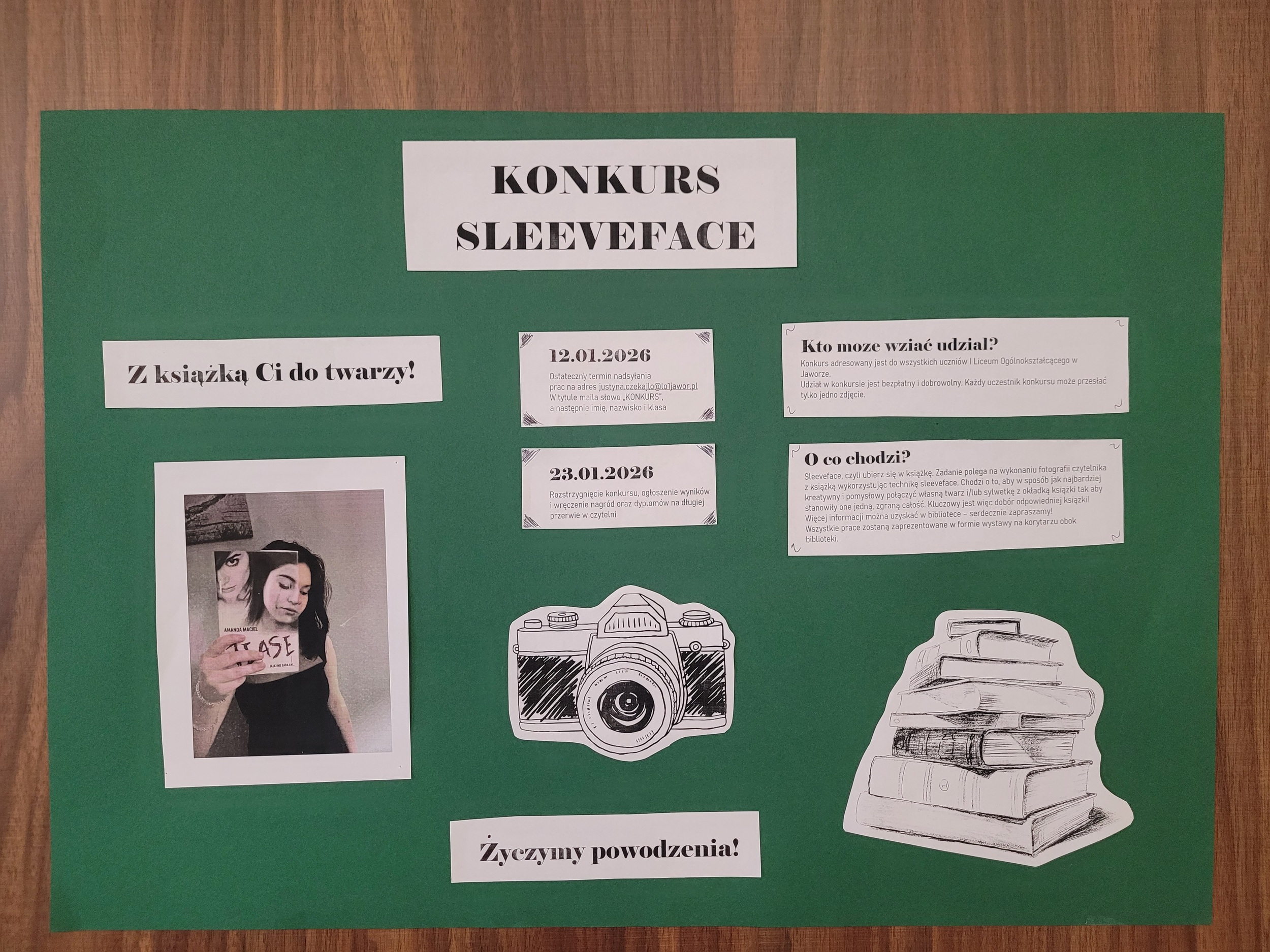 Drodzy Nauczyciele i Uczniowie, Biblioteka I LO ogłasza konkurs na najlepszy sleeveface! Zadanie polega na wykonaniu fotografii czytelnika z książką -...