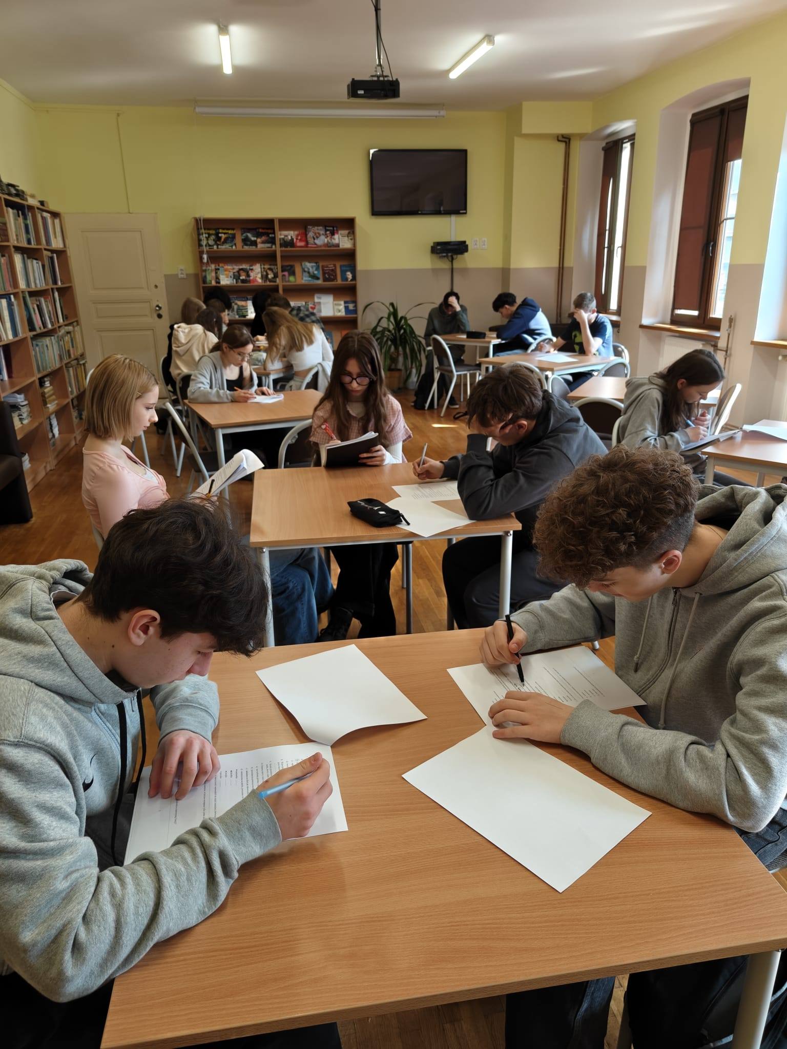 Z okazji Międzynarodowego Dnia Teatru, który przypada 27 marca, w naszej szkole odbył się konkurs wiedzy teatralnej dla uczniów klas pierwszych. Dwudziestu uczestników zmierzyło się z pytaniami dotyczącymi pojęć teatralnych oraz początków teatru w starożytnej Grecji – emocji i zdrowej rywalizacji nie brakowało!
