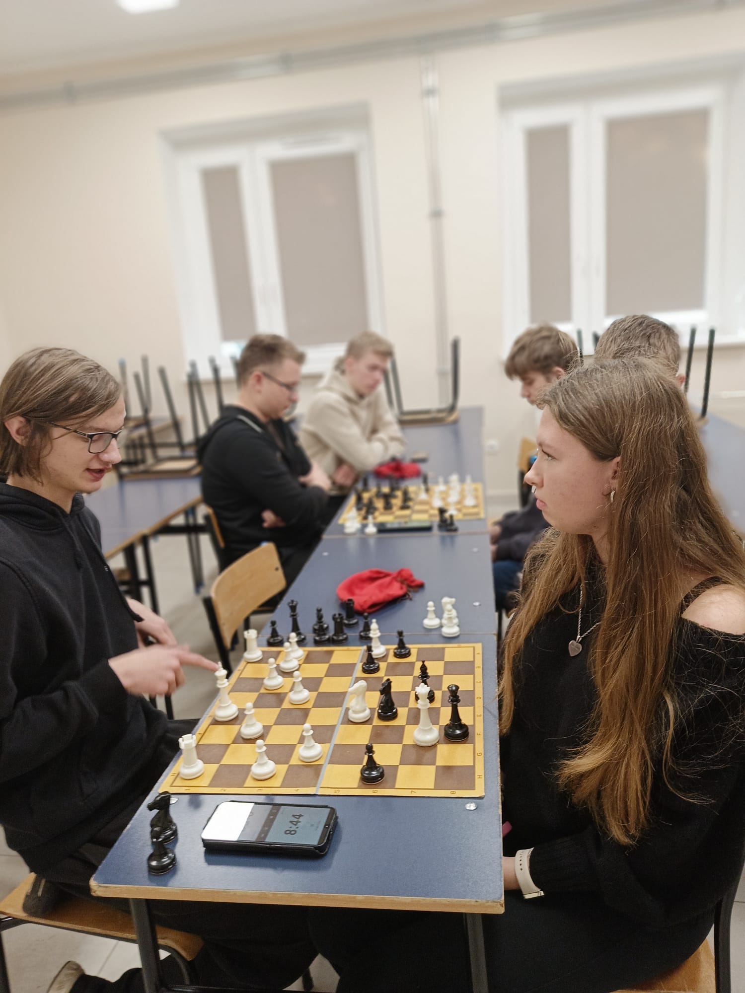 Od pierwszych rund nasi uczniowie prezentowali bardzo dobrą formę, wykazując się świetnym przygotowaniem oraz dojrzałą grą strategiczną. Drużyna pewnie wygrywała kolejne mecze, utrzymując prowadzenie w tabeli. Nasi zawodnicy wykazali się ogromną determinacją i spokojem, dzięki czemu zajęli I miejsce w całym turnieju. Tym samym nasza szkoła została Mistrzem Powiatu w szachach drużynowych.